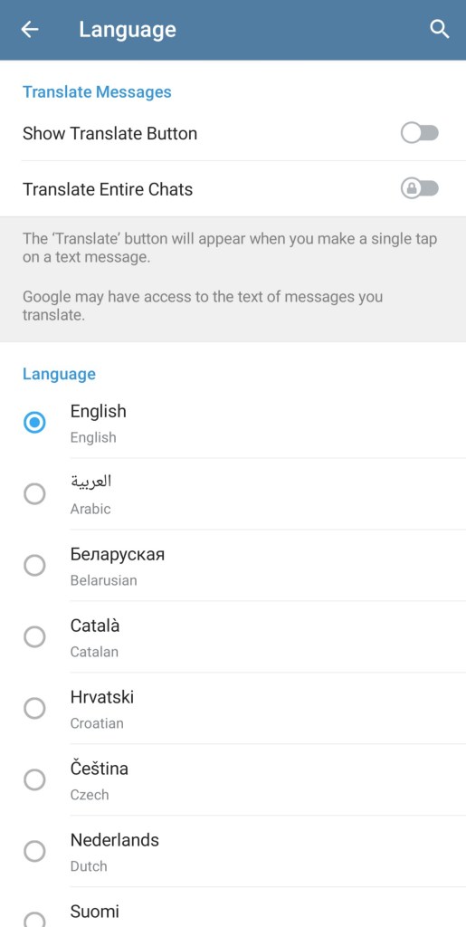 Telegram supports over 20 languages and allows instant message translation (with Telegram Premium).