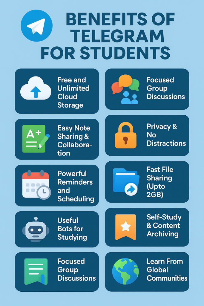 Telegram offers several powerful benefits for students, making it a great tool for learning, collaboration, and staying organized.